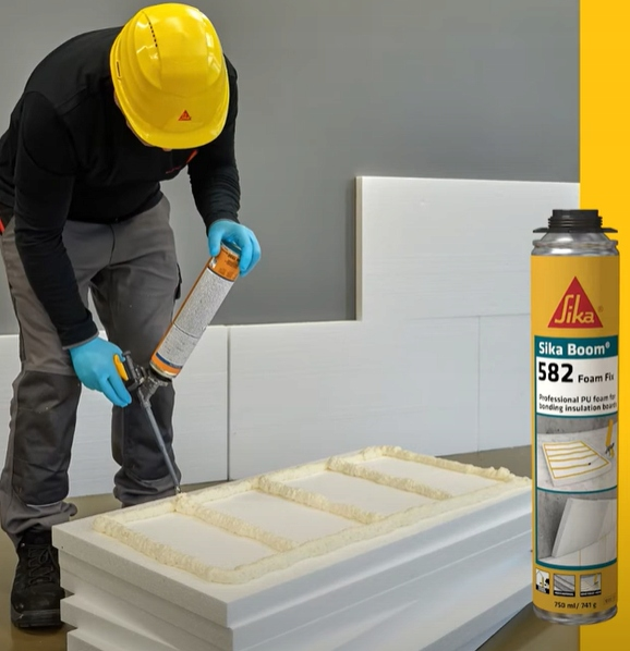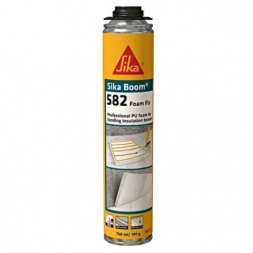 Sika Boom®-582 jest jednoskładnikowym, pęczniejącym klejem poliuretanowym w formie pianki, przeznaczonym do nanoszenia pistoletem, o dobrej przyczepności do wielu różnych podłoży. Przeznaczony jest do trwałego przyklejania płyt izolacyjnych i płyt kartonowo-gipsowych.